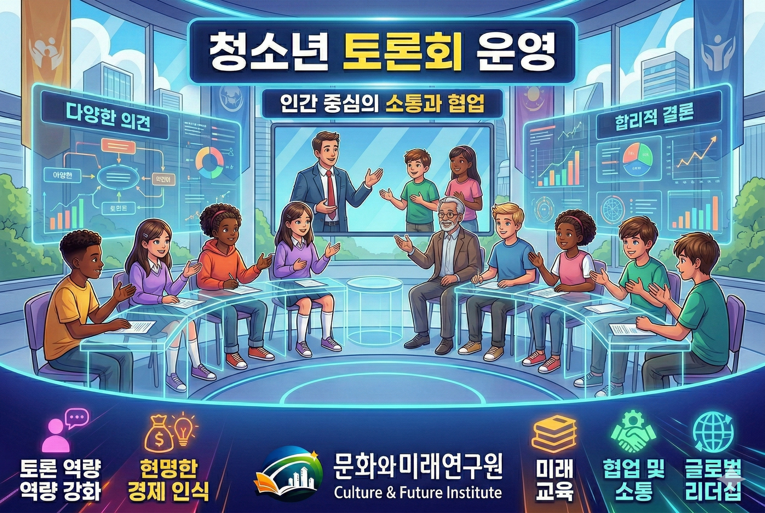 청소년 토론회를 운영합니다. 주제와 인원수는 협의하여 결정하여 진행합니다.